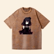 ФУТБОЛКА ОВЕРСАЙЗ КОРИЧНЕВА ВАРЕНА З ПРИНТОМ "АНІМЕ ДІВЧИНКА 1"(ST00032)