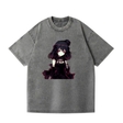 ФУТБОЛКА ОВЕРСАЙЗ СІРА ВАРЕНА З ПРИНТОМ "АНІМЕ ДІВЧИНКА 1"
