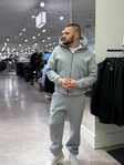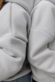 Тканина: тринитка турецька якості пеньє, на флісіЩільність; 320 г/м2 Склад: 80 котон, 20 поліестерКрій худі: оверсайз, рукав спущений, на рукавах, горловині та по низу худі - резинка кашкорсе, є кишеня, капюшон без шнурівокКрій штанів: вільні у обємі, на талії та внизу на резинках, вверху резинка декоративно прошита тричі.