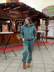 Тканина: тринитка турецька якості пеньє, на флісіЩільність; 320 г/м2 Склад: 80 котон, 20 поліестерКрій худі: оверсайз, рукав спущений, на рукавах, горловині та по низу худі - резинка кашкорсе, є кишеня, капюшон без шнурівокКрій штанів: вільні у обємі, на талії та внизу на резинках, вверху резинка декоративно прошита тричі.